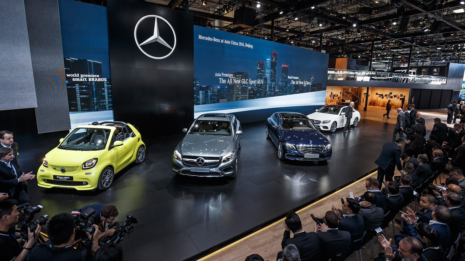 At Auto China in Beijing Mercedes-Benz present the world premiere of the new Mercedes E-Class long-wheelbase version. Specially adapted for China, this E Class features more space and luxury, perfectly meeting the needs of Chinese customers. In addition to the Chinese only premiere, Mercedes shows the Mercedes GLC Coupe, the Mercedes-AMG C63 Coupe and the Mercedes SLC. There is also the world premiere of the smart Brabus as smart fortwo, smart cabrio and smart forfour. Source: http://autovideoreview.com